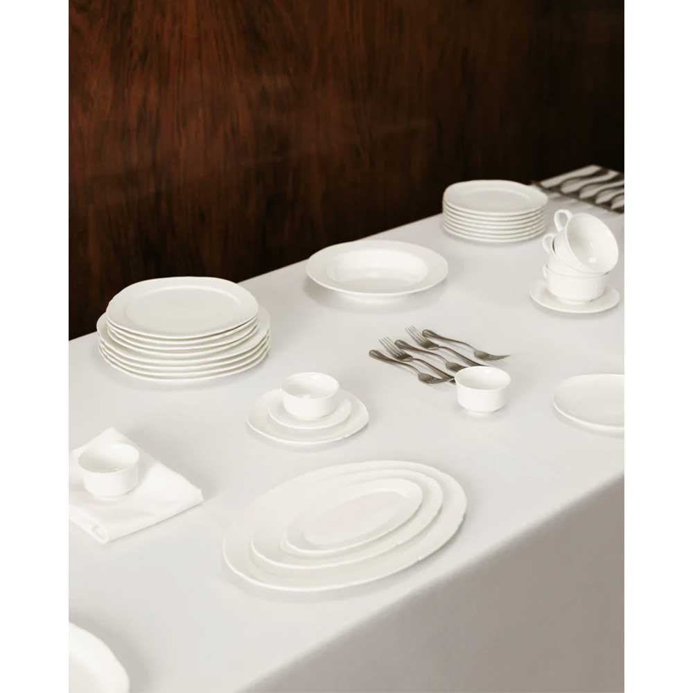 Venduto in confezione da 4 pezzi, questo piatto ovale della collezione Silhouette, disegnata da Sergio Herman, affascina con le sue linee raffinate e organiche, che evocano la morbidezza di nuvole, petali e onde. La scelta del bianco abbagliante aggiunge un tocco raffinato e senza tempo, offrendo la tela ideale per esprimere la propria creatività a tavola.