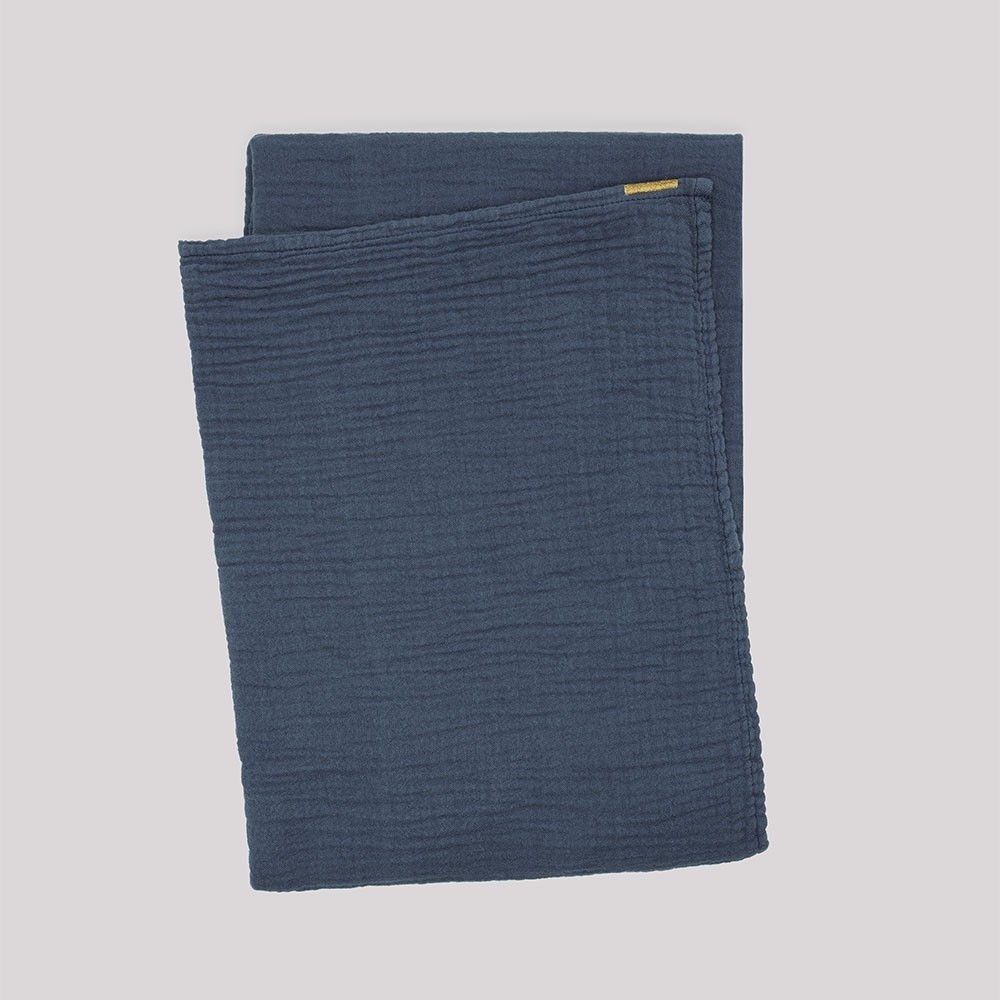Trascorri momenti meravigliosi avvolti in questo plaid in doppia garza di cotone blu tempesta. Molto morbido, accompagnerà perfettamente i tuoi momenti di relax. Disponibile come telo per i tuoi momenti di picnic o anche come telo mare! Disponibile in 5 colori.