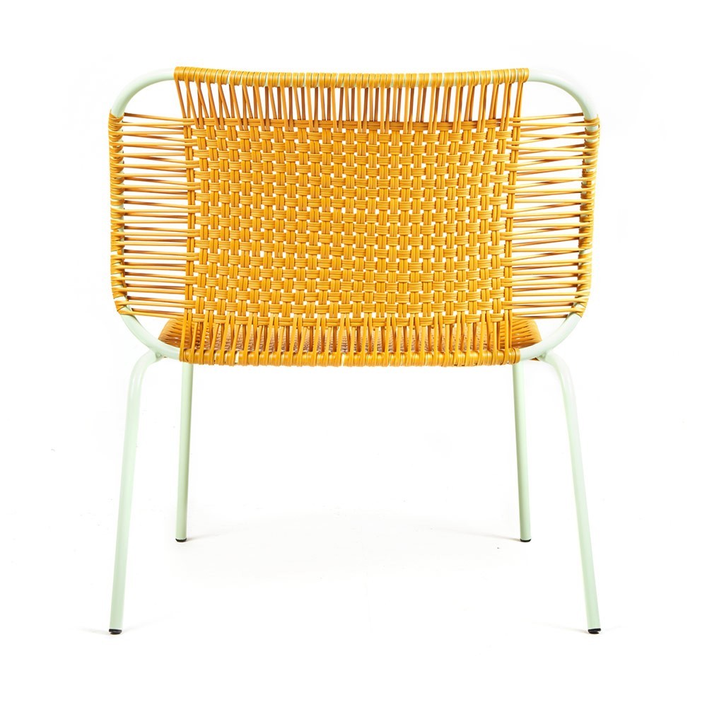 La poltrona bassa Cielo miele e menta è ideale per uso interno o esterno grazie alla sua leggera struttura in acciaio e al cavo in plastica riciclata. La collezione Cielo è realizzata a mano a Santa Marta, Colombia, lungo la costa caraibica. Gli esperti artigiani tessono a mano i fili di plastica riciclata utilizzando una tecnica tradizionale colombiana, aggiungendo un tocco colorato e originale. Immaginata dal designer Sebastian Herkner, questa collezione è un vero invito al viaggio e anche una grande avventura umana.