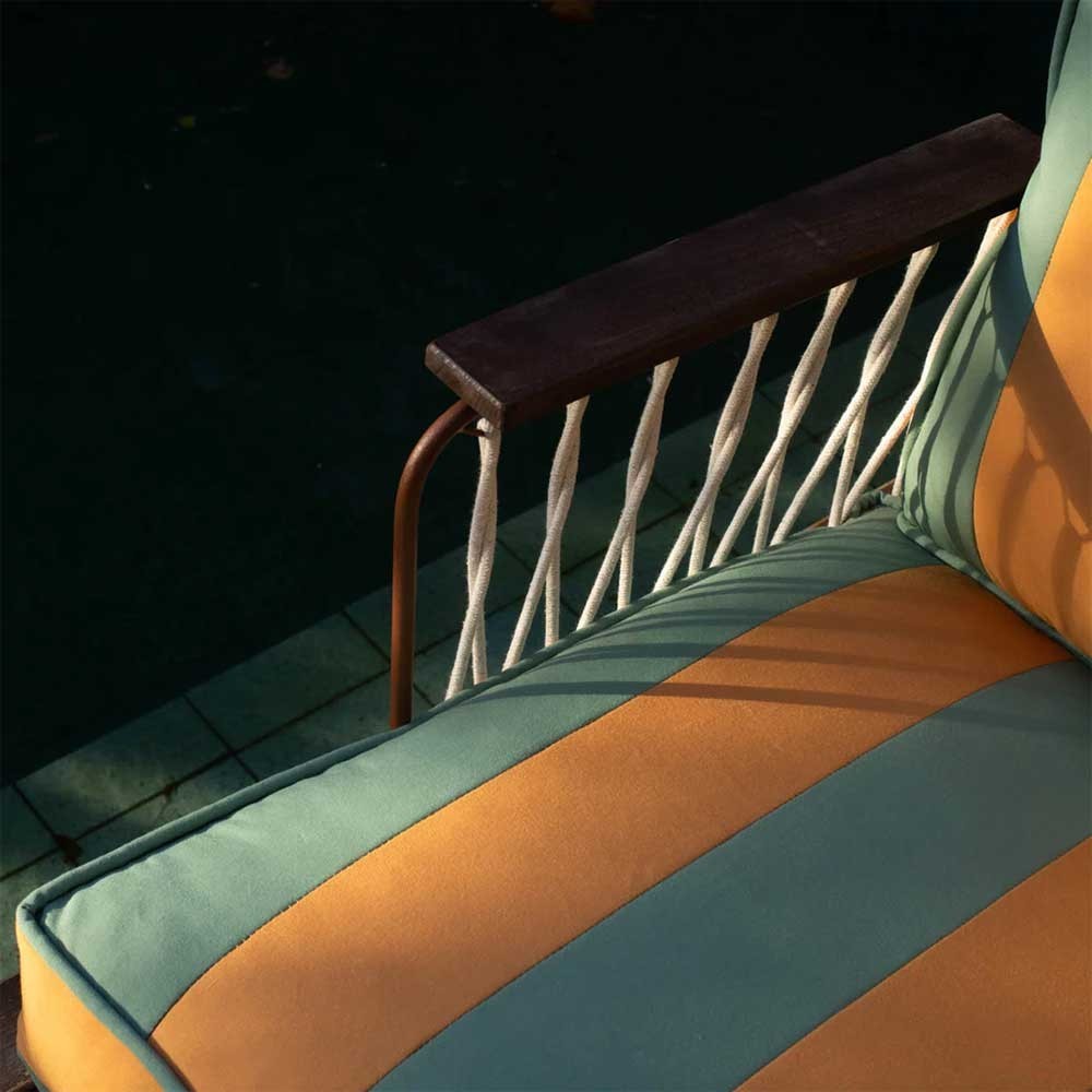 Oltre alle graziose strisce, i cuscini di questa poltrona Croisette sono dotati di profili color felce, che rendono questa edizione da esterno un pezzo da collezione.