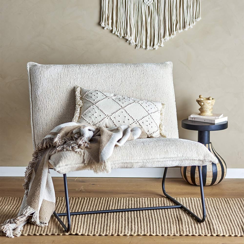 La Cape Lounge Chair di Bloomingville, rivestita in morbidissimo tessuto bouclé, unisce un design semplice e bello a un comfort eccezionale. La poltrona può stare da sola in un angolo accogliente o essere allineata con altre per formare un divano.