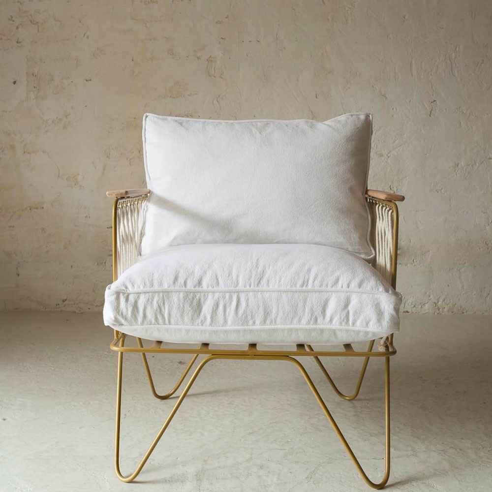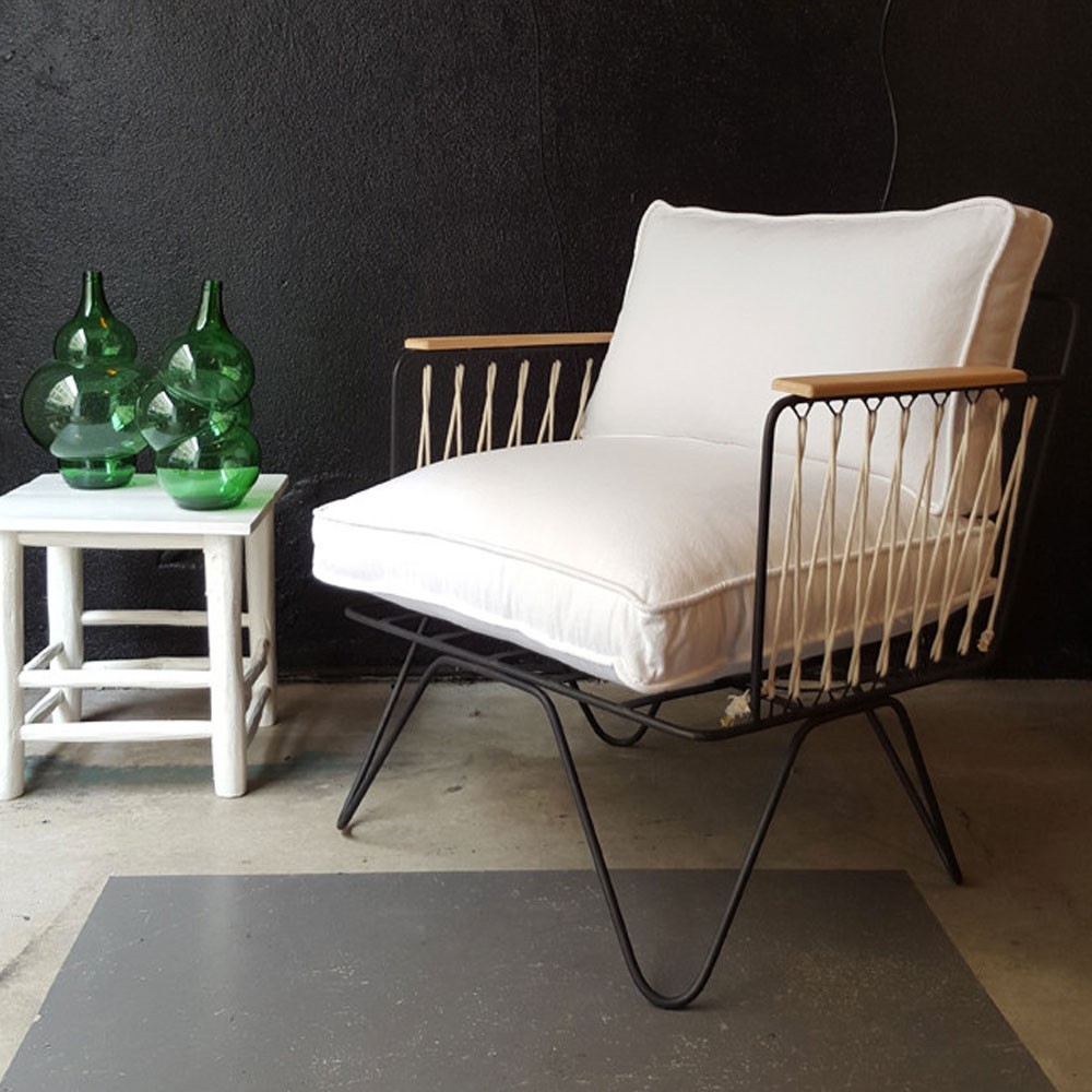 Confortevole grazie alla sua seduta generosa e al suo ampio e morbido schienale, le sue corde in cotone bianco rievocano quelle delle barche a vela, mentre il cotone bianco dei suoi cuscini richiama le sdraio della Costa Azzurra, culla dello spirito della Costa Azzurra che sprigiona.