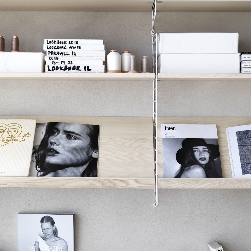 Perfetto per delimitare uno spazio e creare una parete attrezzata, il sistema String è ideale per portare un lato moderno e ordinato al tuo spazio abitativo. In una camera da letto, in soggiorno o in ufficio, il sistema String ti aiuterà a riporre tutti i tuoi effetti personali con eleganza e design.