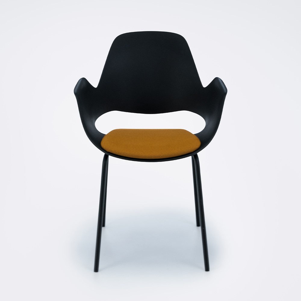 Questa graziosa sedia Falk, di Thomas Pedersen per Houe, è un prodotto eco-responsabile perfetto per i tuoi interni! Infatti, questa seduta è realizzata con plastica riciclata post-consumo presa direttamente dai rifiuti domestici e tessuto in poliestere riciclato post-consumo, inoltre è certificata EU Ecolabel. Composta da una base con quattro gambe in metallo verniciato a polvere nera, una seduta a conchiglia che segue le curve del tuo corpo e una seduta imbottita color senape, questa sedia è allo stesso tempo moderna e originale. Ideale a casa, nella tua sala da pranzo, o al lavoro, nel tuo ufficio, la sedia Falk si adatterà all'uso che desideri.