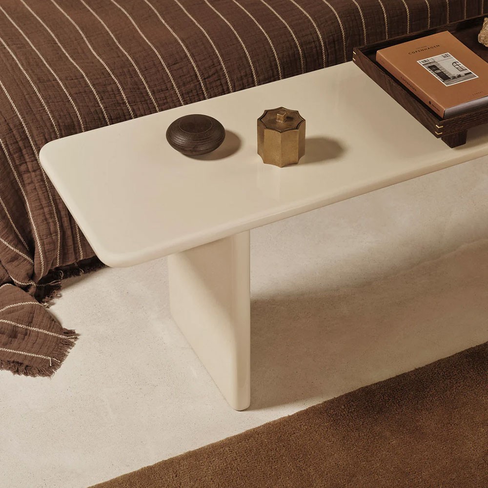 Aggiungete un tocco di raffinatezza ai vostri interni con l'elegante panca Rink. Estensione della serie Rink, la panca è realizzata con cura in MDF certificato FSC™ e rifinita con una laccatura lucida e brillante. Il suo design è caratterizzato da una silhouette classica del tavolo con bordi lisci e arrotondati per un'espressione contemporanea. La panca Rink offre un'eccezionale versatilità, sia che venga collocata in corridoio che ai piedi di un letto.
