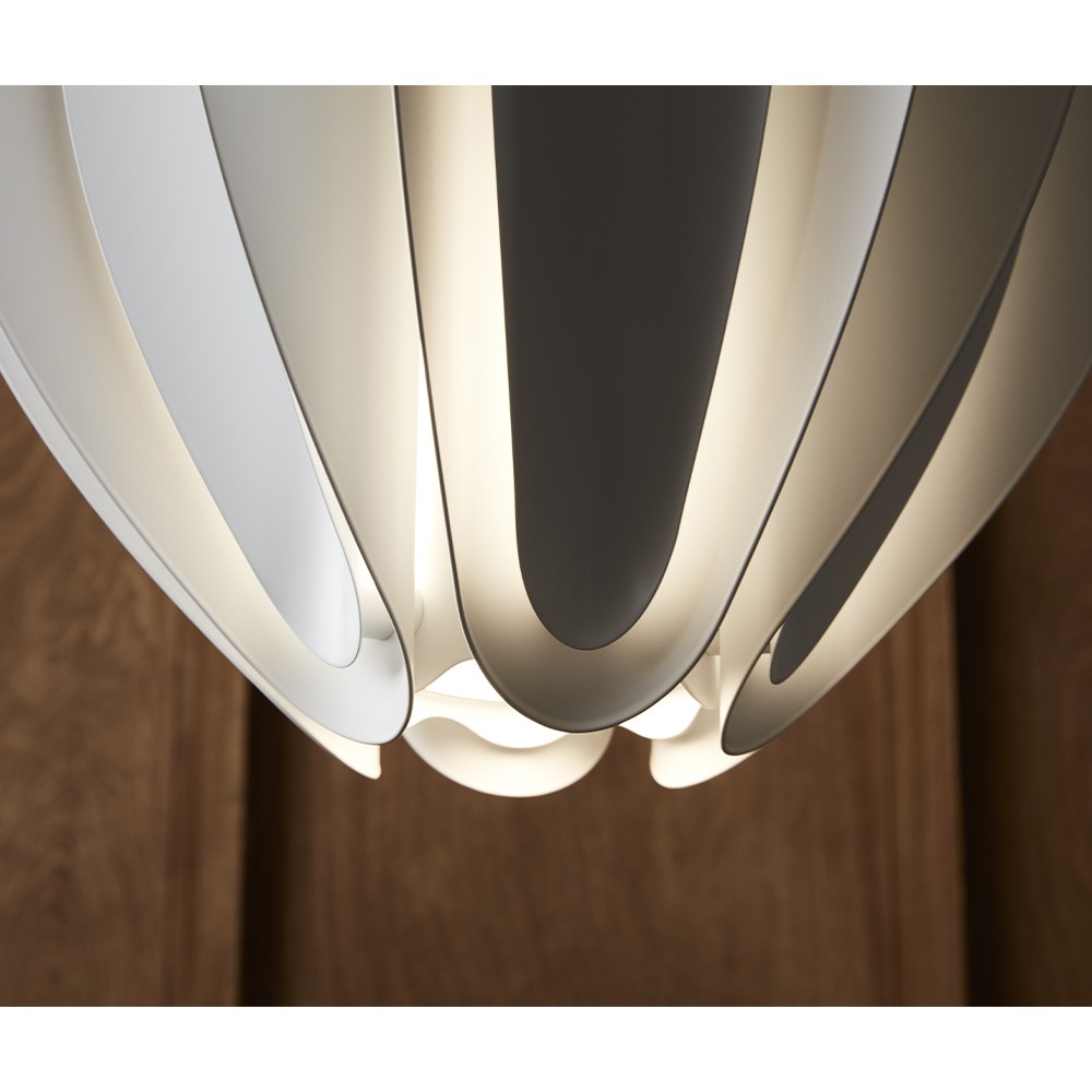 Scoprite la sospensione Tulip di Belid, il cui nome deriva dalla sua forma con le parti metalliche piegate singolarmente per ottenere la forma di un fiore di tulipano. La sospensione diffonde il flusso luminoso in modo morbido e caldo nei vostri interni, dando un tocco primaverile alla vostra casa. Può essere posizionata da sola o in fila.