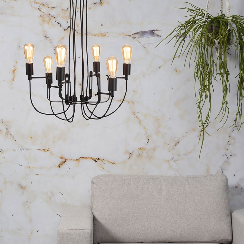 Scoprite la sospensione Seattle, una bella lampada in stile industriale caratterizzata da una lega di ferro e tessuto. Con le sue sei lampadine, questa sospensione porterà una luce brillante, per uno spirito loft molto moderno.