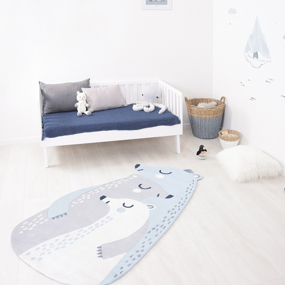 Scoprite il magnifico tappeto della collezione Artic Dream, realizzato in cotone 100 con il motivo della famiglia di orsi.Aggiungerà morbidezza ai vostri interni. Morbido e colorato, questo tappeto dalla forma originale renderà unica la decorazione del vostro bambino.