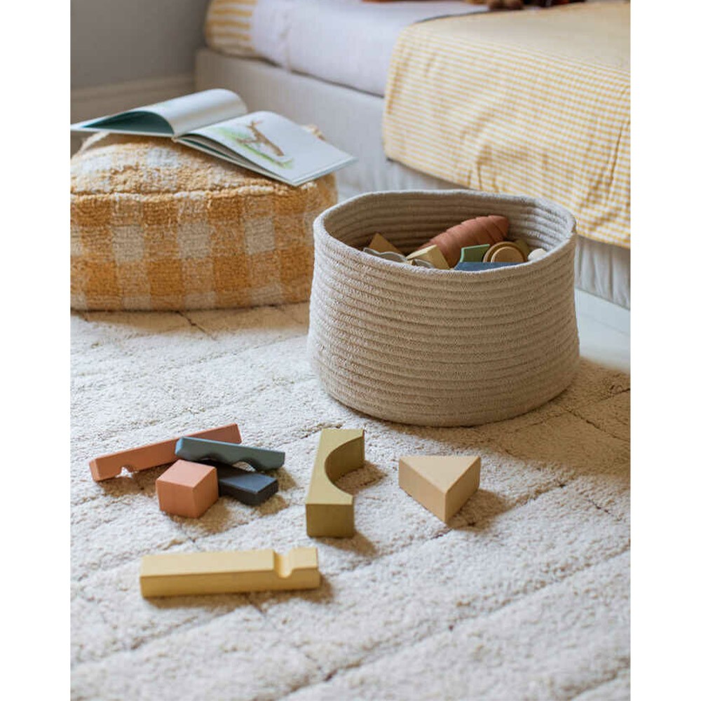 Scoprite il tappeto lavabile Mosaic di Lorena Canals. Questo tappeto presenta un motivo a mosaico semplice in colore naturale su una base di tessuto marrone caramello lasciato parzialmente scoperto per imitare le fughe.