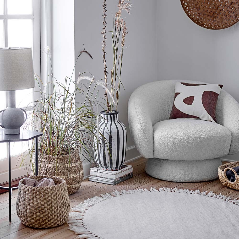 Questo tappeto Lenea proposto da Bloomingville sarà perfetto per qualsiasi tipo di decorazione d'interni che necessiti di un tocco di novità. Composto principalmente da lana, è di alta qualità. Inoltre, la sua forma rotonda conferisce alla stanza un ulteriore lato di design.
