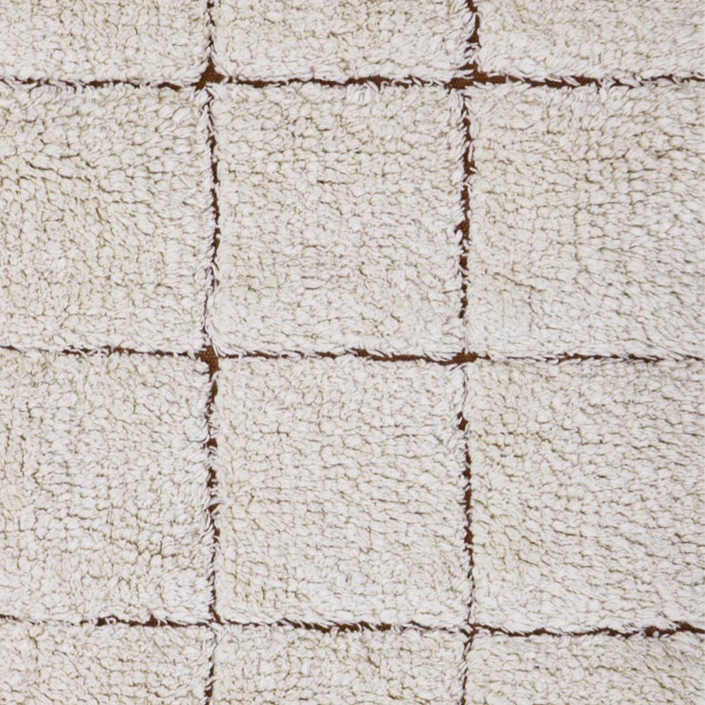 Scoprite il tappeto lavabile Mosaic di Lorena Canals. Questo tappeto presenta un motivo a mosaico semplice in colore naturale su una base di tessuto marrone caramello lasciato parzialmente scoperto per imitare le fughe.