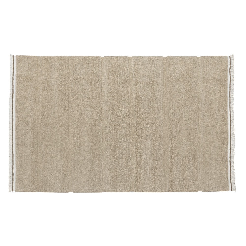 Realizzato a mano in lana di pecora, questo grazioso tappeto Steppe beige, di Lorena Canals, appartiene alla vasta collezione Les Moutons du Monde. Quest'ultimo è costituito da molti tappeti realizzati artigianalmente con lana di pecora proveniente da tutto il mondo. Questa collezione offre tappeti resistenti, non tinti, non tossici e lavabili. Questo caldo tappeto beige è un grande classico da trovare in casa. I suoi peli corti ed extra corti che formano delle fasce dritte, uniti alle sue frange laterali, ci danno una sensazione di naturale morbidezza. Ideale in un soggiorno, in una camera da letto o in un ufficio, questo tappeto troverà il suo posto perfetto nella tua casa dando un tocco accogliente alla stanza.