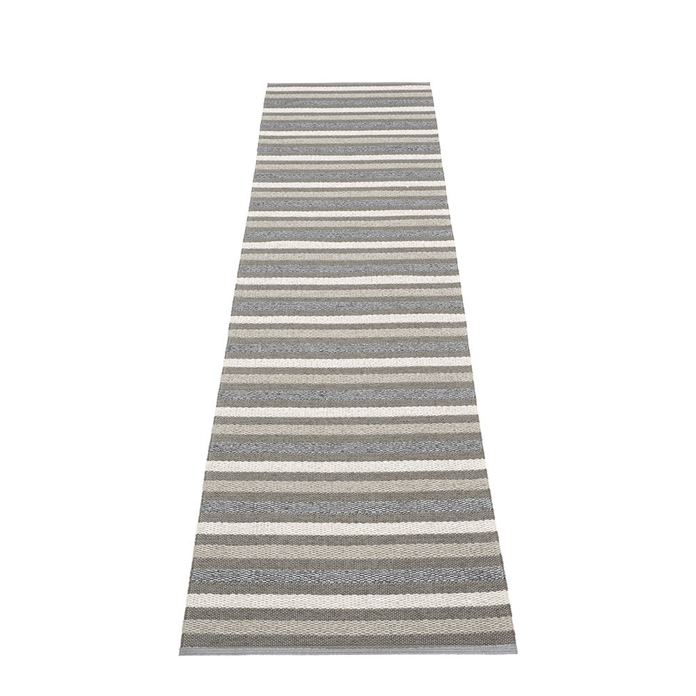 Prodotto a Dalarna, Svezia. Tessuto su un telaio tradizionale con navette in legno. Un tappetino in PVC molto pratico e di facile manutenzione prodotto in Svezia. Nastri in plastica pressata per una maggiore resistenza e durata del prodotto con il logo Pappelina stampato su entrambi i bordi.