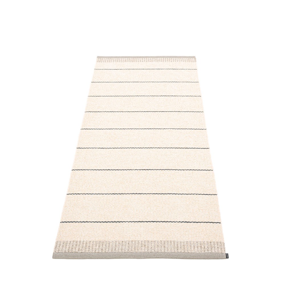 Prodotto a Dalarna, Svezia. Tessuto su un telaio tradizionale con navette in legno. Un tappetino in PVC molto pratico e di facile manutenzione prodotto in Svezia. Nastri in plastica pressata per una maggiore resistenza e durata del prodotto con il logo Pappelina stampato su entrambi i bordi.