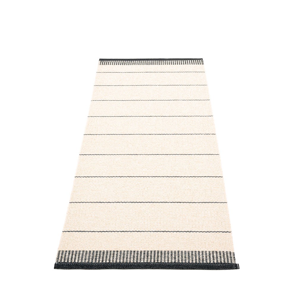 Prodotto a Dalarna, Svezia. Tessuto su un telaio tradizionale con navette in legno. Un tappetino in PVC molto pratico e di facile manutenzione prodotto in Svezia. Nastri in plastica pressata per una maggiore resistenza e durata del prodotto con il logo Pappelina stampato su entrambi i bordi.