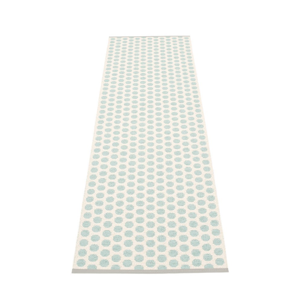 Prodotto in pelle scamosciata, il tappeto Noa è realizzato in plastica per uso interno ed esterno. I suoi bordi sono saldati con strisce di rinforzo per un'elevata resistenza. Il tappeto è tessuto con strisce di plastica prive di ftalati da Gislaved Folie AB su un telaio tradizionale. È disponibile in diversi colori e dimensioni.