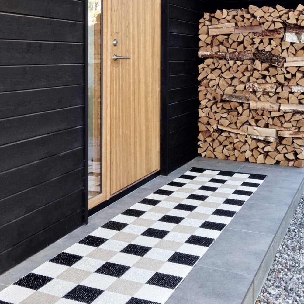 Prodotto in pelle scamosciata, il tappetino VERA è realizzato in plastica per uso interno ed esterno. I bordi sonoorlati con un logo cucito su un'estremità. Il tappeto è tessuto da strisce di plastica prive di ftalati da Gislaved Folie AB su un telaio tradizionale. È disponibile in diversi colori e dimensioni.
