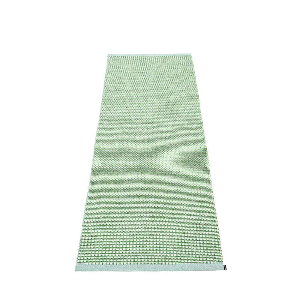 Prodotto a Dalarna, Svezia. Tessuto su un telaio tradizionale con navette in legno. Un tappetino in PVC molto pratico e di facile manutenzione prodotto in Svezia. Nastri in plastica pressata per una maggiore resistenza e durata del prodotto con il logo Pappelina stampato su entrambi i bordi.