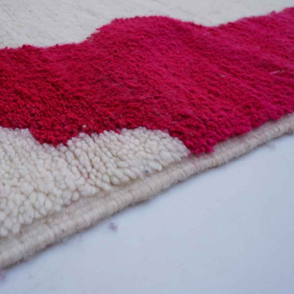 Questo tappeto chiamato Azilal prende il nome dalla regione di Azilal nelle montagne dell'Atlante in Marocco dove è stato realizzato. Ogni pezzo è realizzato a mano al 100% su un telaio tradizionale. Occorrono più di due mesi di tessitura per realizzare un tappeto di medie dimensioni.