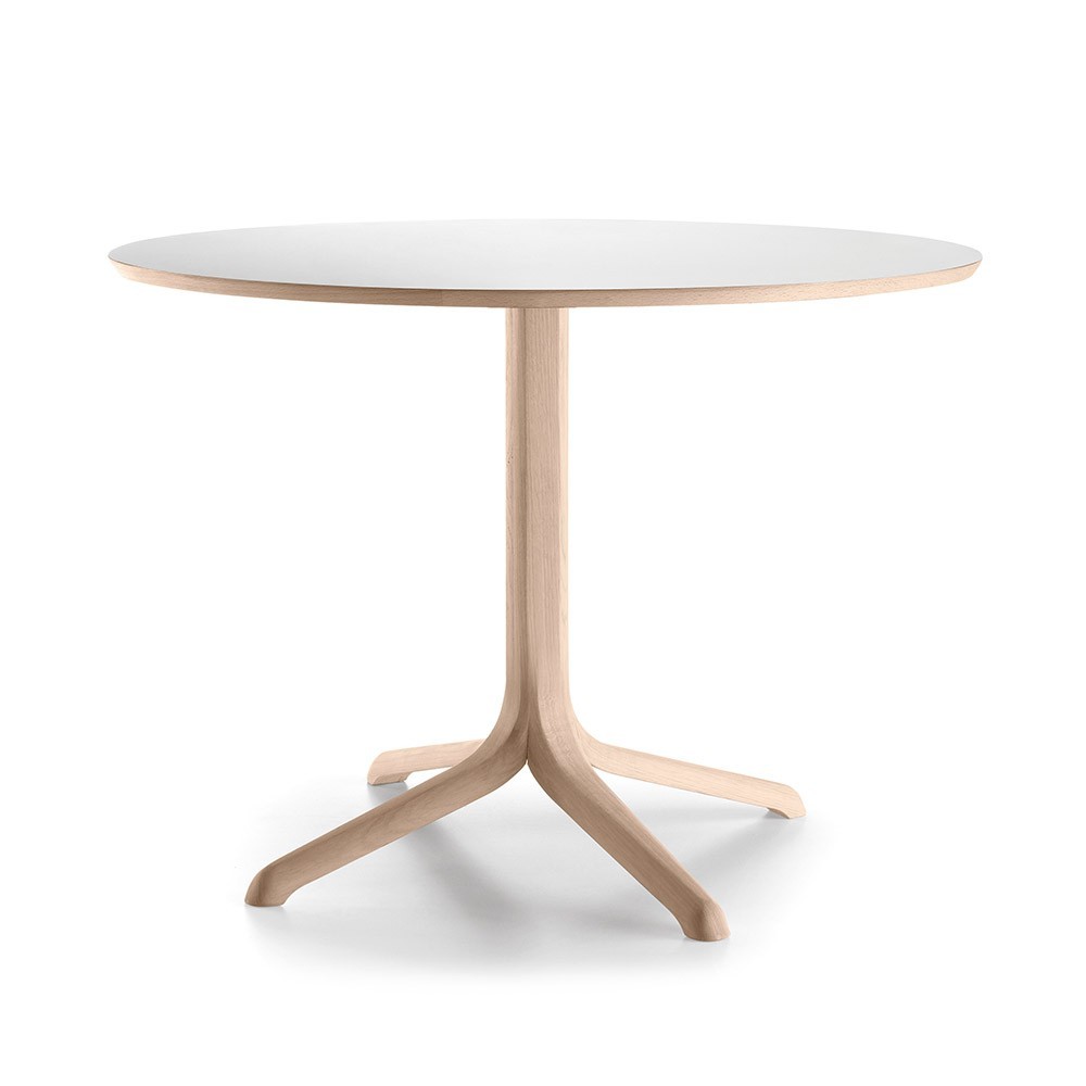 I tavoli da bistrot Jantzi, disegnati da Samuel Accoceberry, sono il risultato dell'incontro tra designer e artigiano. Il piano rotondo, realizzato in diversi materiali, poggia su un elegante piede in legno che ricorda la radice di un albero. Forza di carattere e qualità, questo tavolo ti garantisce tanti momenti di convivialità con i tuoi cari. Possibilità di avere un piano in rovere o laminato. Disponibile anche con piano quadrato.