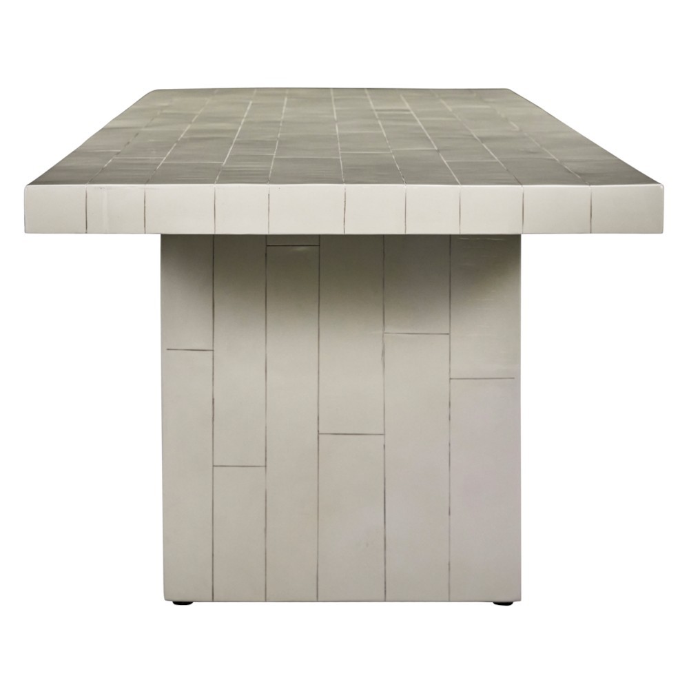 Create uno spazio elegante e unico con questo tavolo da pranzo rettangolare in piastrelle di legno di mango, rifinito con una laccatura lucida color sabbia. Il suo raffinato motivo geometrico, ritmico e perfettamente equilibrato, attira immediatamente l'attenzione e conferisce all'insieme una forte identità visiva. Le robuste gambe dal design strutturato ne rafforzano la presenza, fornendo una solida base e un tocco decisamente contemporaneo.