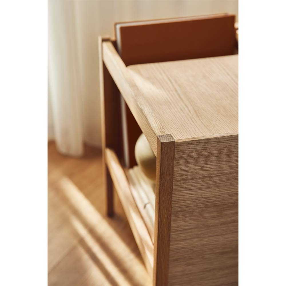 Un piccolo compagno versatile per qualsiasi spazio abitativo. Come dettaglio funzionale, lo spazio tra la struttura e il piano crea un pratico spazio per riporre riviste e giornali. Il tavolino è accuratamente dimensionato per adattarsi a un'ampia varietà di usi e contesti, ad esempio come tavolino da caffè, portariviste, tavolino o comodino.