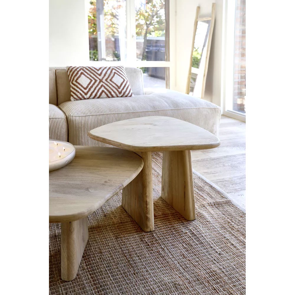 Realizzati in legno di mango, questi tavolini Montreal hanno una finitura naturale che rivela tutte le venature del legno e una forma organica. Eleganti e raffinati, possono essere utilizzati in coppia o separatamente.