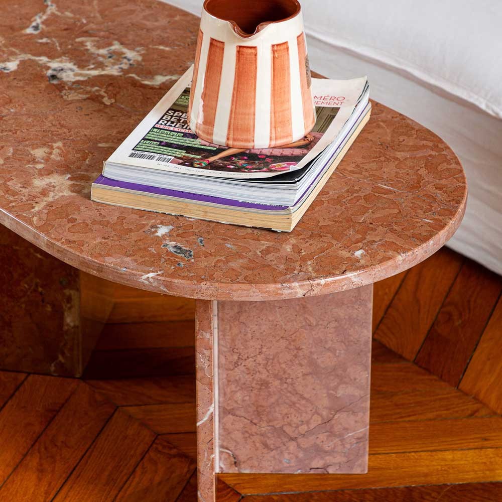 Tavolino in marmo disegnato da Marion, la fondatrice di Them, e realizzato al 100% a mano in Marocco in uno dei nostri talentuosi laboratori partner.