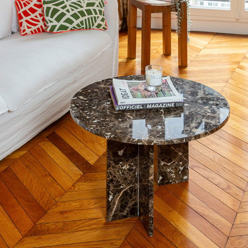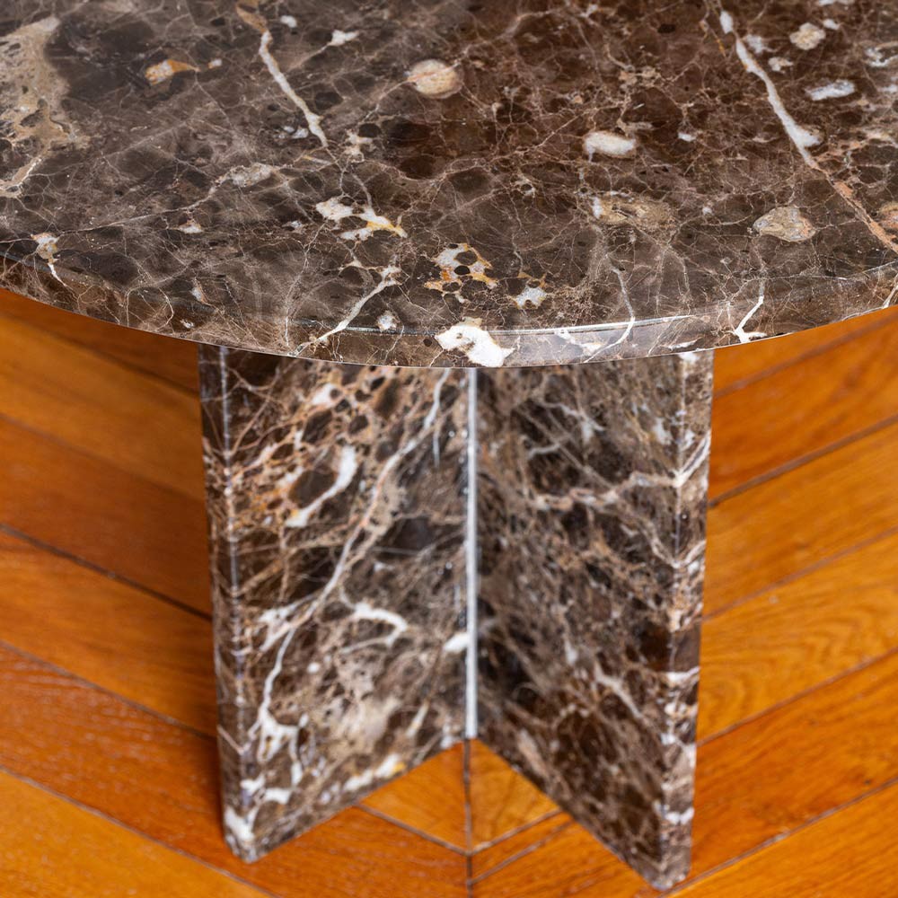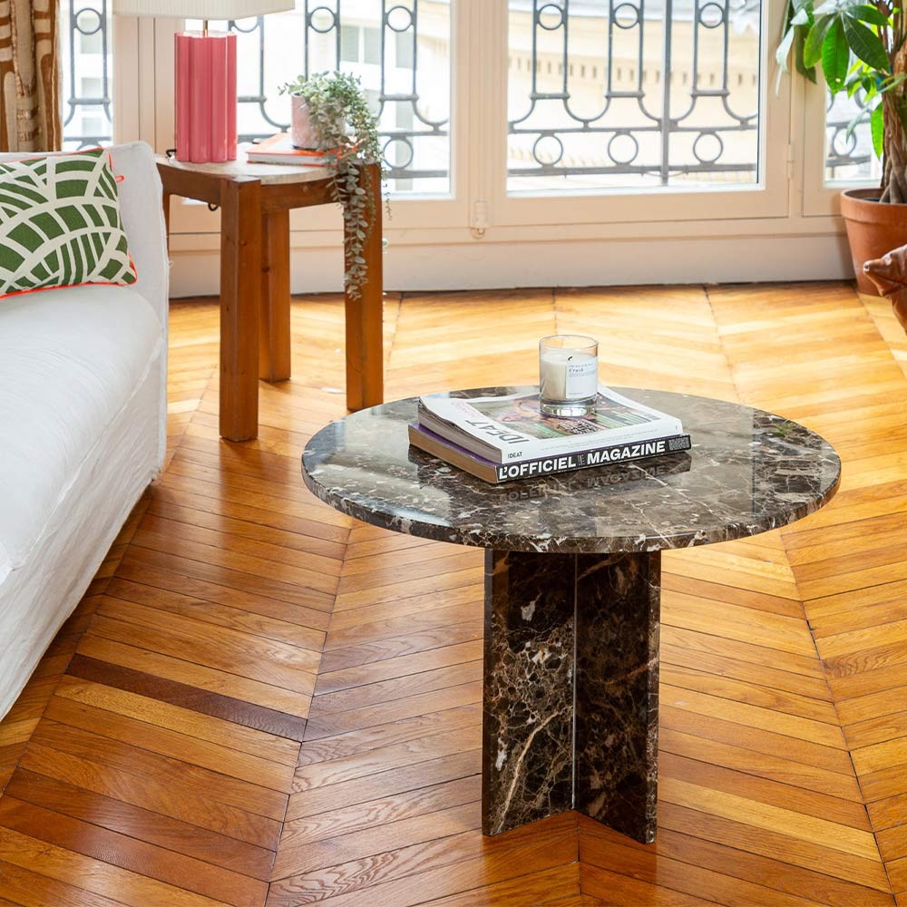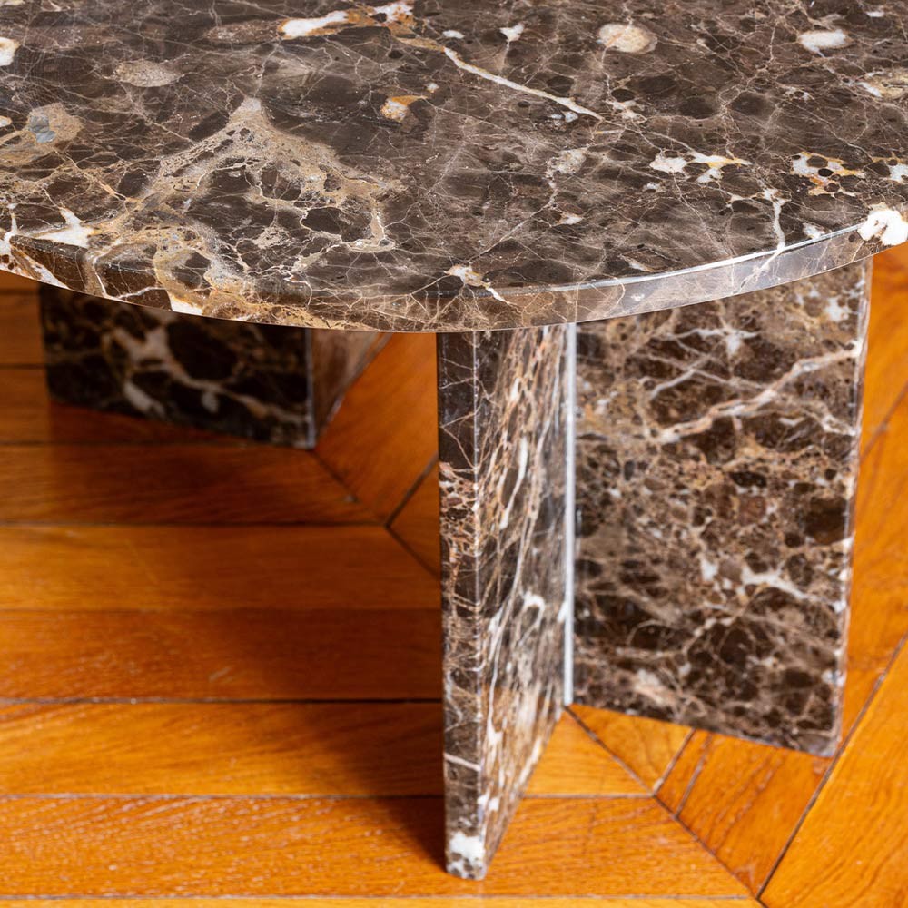 Tavolino in marmo disegnato da Marion, la fondatrice di Them, e realizzato al 100% a mano in Marocco in uno dei nostri talentuosi laboratori partner.