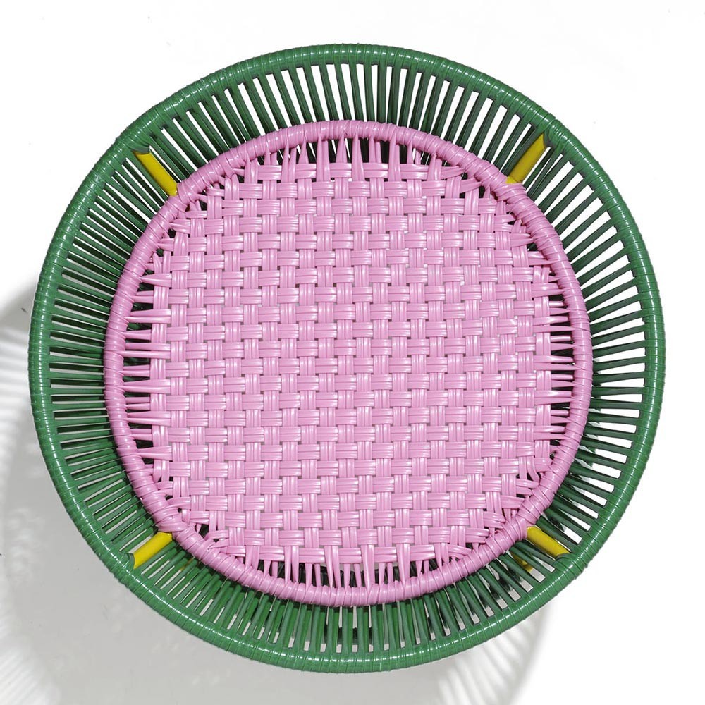 A Santa Marta, sulla costa caraibica, Rafael ei suoi amici producono i tavolini Caribe in plastica e acciaio utilizzando la tecnica di tessitura chiamata “momposino”, tipica della regione. È su questa base che Sebastian Herkner ha disegnato la gamma di mobili "caribe" per anime, ricca di colore e originalità.
