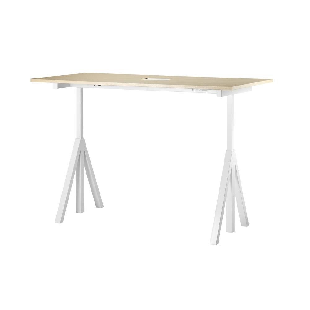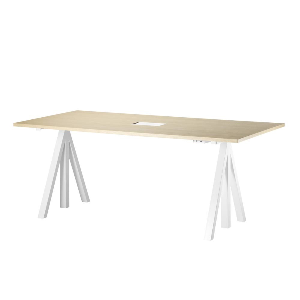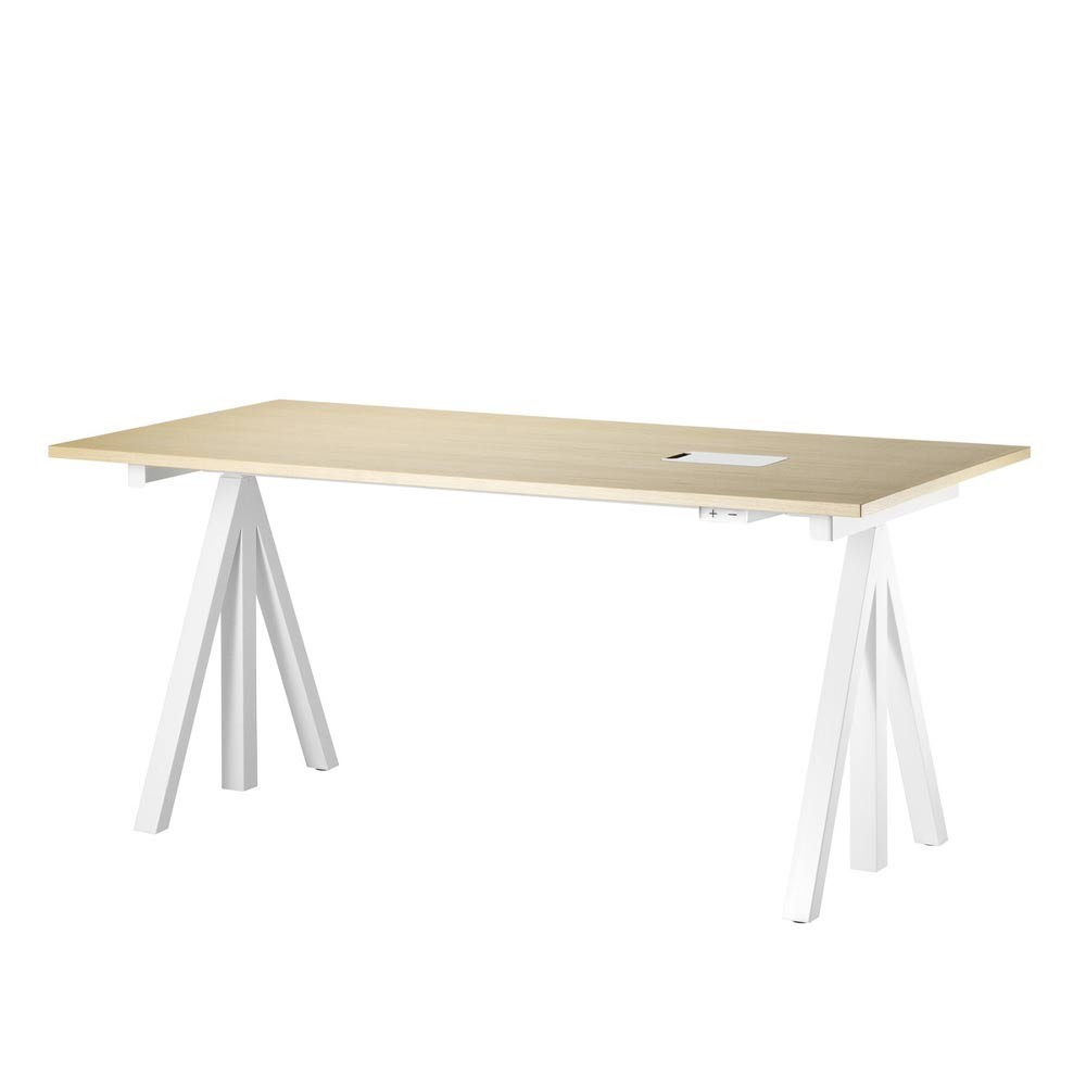 La scrivania regolabile Works crea spazi di lavoro flessibili ed ergonomici. La scrivania è composta da una base regolabile e da un piano di lavoro. Le scrivanie profonde 78 cm sono disponibili in tre larghezze: 120, 140 e 160 cm. La scrivania profonda 90 cm, che può essere utilizzata per creare un tavolo da riunione o uno spazio di lavoro più ampio, è disponibile in un'unica larghezza di 180 cm. L'altezza massima della base è di 118,5 cm e quella minima di 71,5 cm. Questo lo rende adatto a tutti i tipi di ufficio.