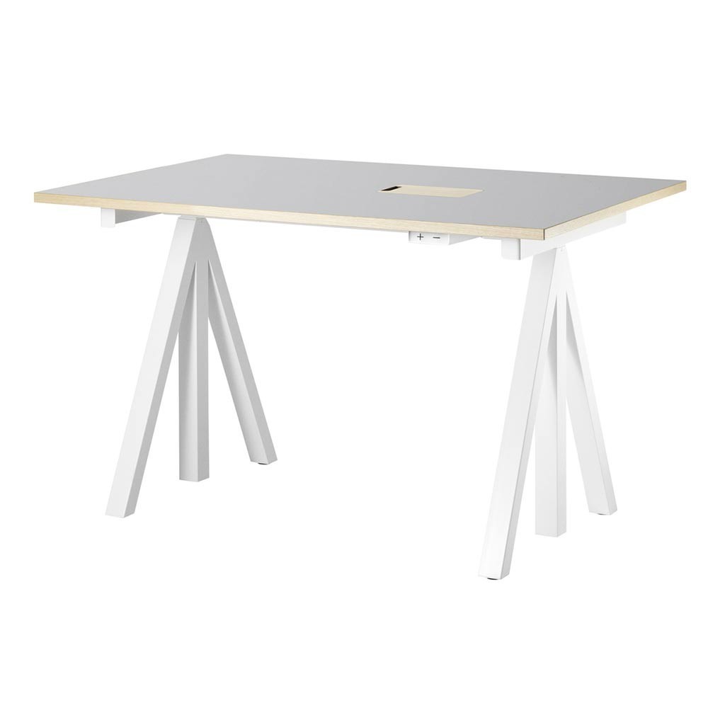 Scrivanie regolabili - Lino grigio chiaro con finiture in frassino by String Furniture
