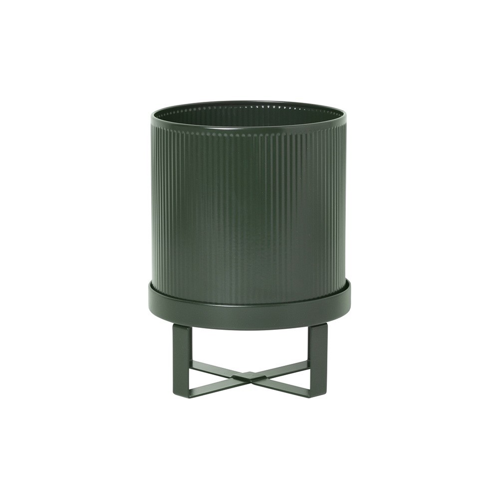 Realizzato in acciaio, questo elegante vaso Bau verde scuro, di Ferm Living, appartiene alla vasta collezione di vasi Bau del marchio, ispirati all'architettura Bauhaus. Questi vasi hanno la grande caratteristica di essere rialzati e di avere quell'aspetto lineare e rigato in superficie. Ideale nel tuo soggiorno, nel tuo ingresso o nel tuo giardino, questo piccolo vaso ha il vantaggio di poter essere posizionato sia all'interno che all'esterno, quanto basta per esplorare tutte le possibilità di decorazione per tutta la tua casa.
