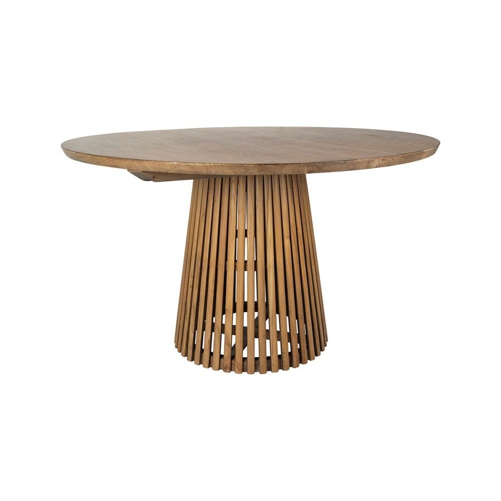 Ontdek de Camille eettafel, volledig gemaakt van natuurlijk iepenhout. Het ontwerp heeft een elegante en originele centrale lattenpoot, met daarbovenop een bijpassend rond blad. Een praktisch en aantrekkelijk stuk dat karakter zal toevoegen aan je eetkamer.