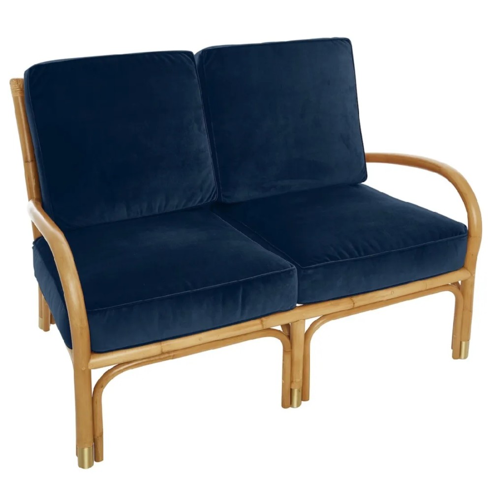 Elk detail weerspiegelt de zorg voor comfort en kwaliteit: eersteklas Bultex kussens gemaakt in Frankrijk, fluwelen hoezen met afneembare hoezen, dubbele rieten bekleding op de rugleuningen, koperen afwerkingen... Een subtiel, geraffineerd vleugje natuurlijkheid, voor een vintage geest met moderniteit.
