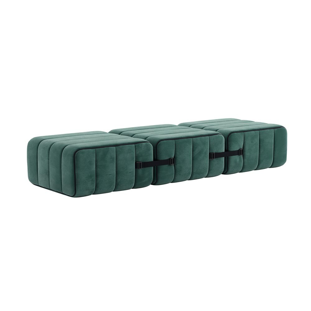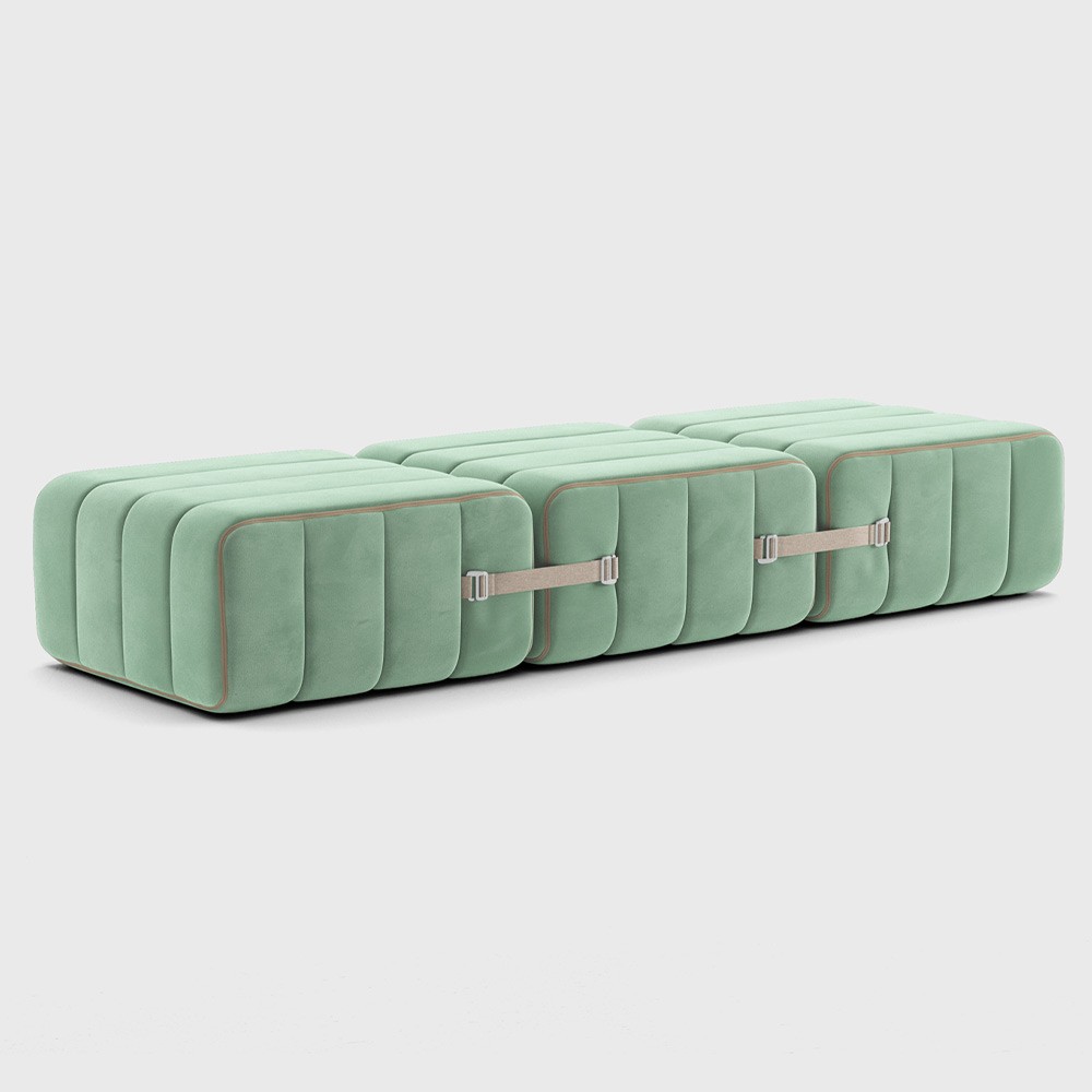 De set van 3 Curt-modules kunnen op zichzelf staan en worden een kleine asymmetrische fauteuil, een bank, een loungestoel of drie kleine individuele krukjes. Een paar losse modules zijn voldoende om te transformeren tot een uiterst flexibel en modulair banksysteem en dat op een heel eenvoudige manier: De set van 3 Curt-modules bestaat uit verstelbare banden waarmee je eindeloos kunt creëren.