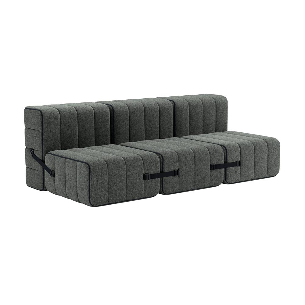 De set van 6 Curt-modules kunnen op zichzelf staan en worden een kleine asymmetrische fauteuil, een bank, een loungestoel of zes kleine individuele krukjes. Een paar losse modules zijn genoeg om om te toveren tot een uiterst flexibel en modulair banksysteem en dat op een heel simpele manier: De set van 6 Curt modules bestaat uit verstelbare banden waarmee je eindeloos kunt creëren.