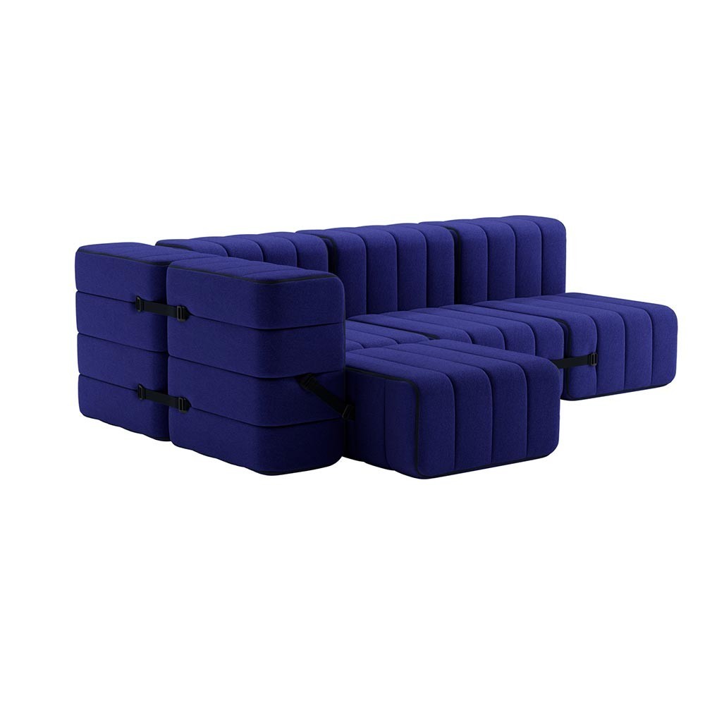 De set van 9 Curt-modules kunnen op zichzelf staan en een asymmetrische fauteuil, bank, loungestoel of kleine individuele krukjes worden. Een paar losse modules zijn genoeg om om te toveren tot een uiterst flexibel en modulair banksysteem en dat op een heel simpele manier: De set van 9 Curt modules bestaat uit verstelbare banden waarmee je eindeloos kunt creëren.