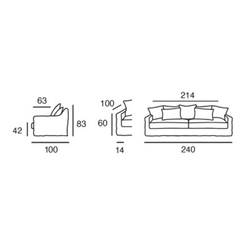 - Breedte: 240 cm | Diepte: 100 cm | Hoogte: 83 cm | Zitdiepte: 63 cm | Zithoogte: 42 cm | Armbreedte: 14 cm