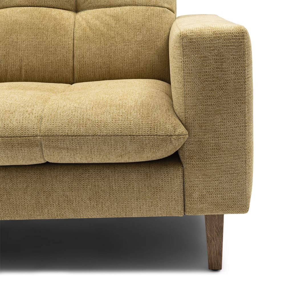 Ontdek de Nelson 3,5-zitsbank, een toonbeeld van verfijning in de prachtige kleur Silky Brass. Deze bank biedt niet alleen genoeg ruimte voor iedereen, maar straalt ook elegantie uit in elk interieur. Met zijn comfortabele zittingen nodigt de Nelson je uit om te ontspannen en in stijl te genieten van gezellige momenten.