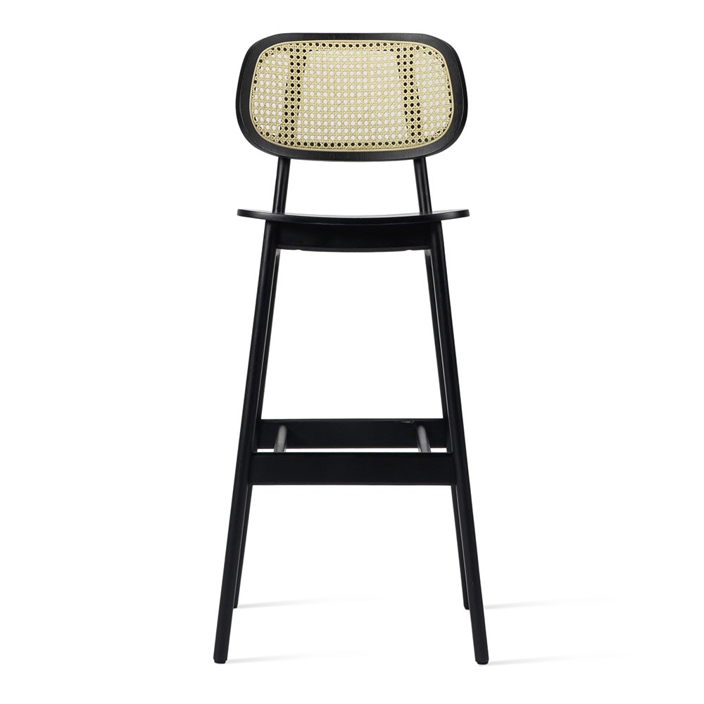 Samengesteld uit riet en een zwart getinte structuur, zal de Titus barkruk perfect passen in uw eetkamer.