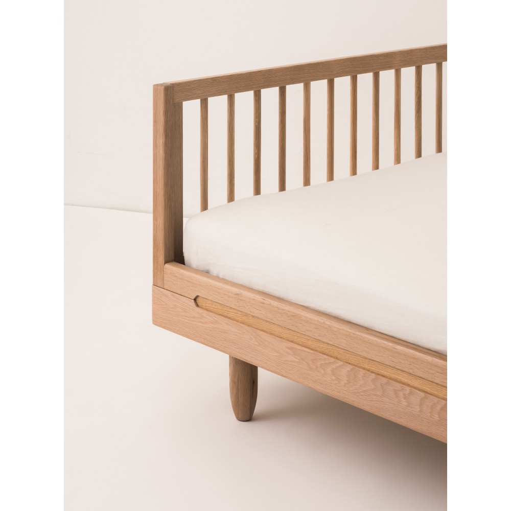 Het Pure-bed voor volwassenen is gemaakt van massief eikenhout en is perfect om de slaapkamer van uw kinderen om te toveren tot een moderne en comfortabele ruimte.