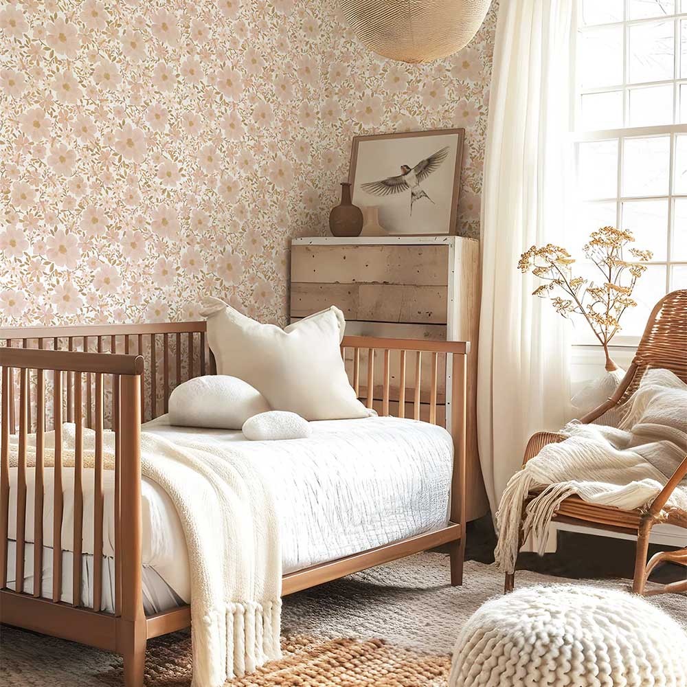 Voeg een vleugje elegantie toe aan de slaapkamer van je kind met ons rozenbottelbloemenbehang. Dit romantische, nostalgische ontwerp, verkrijgbaar in wit, groen en zwart, creëert een zachte, dromerige sfeer. Het behang is gemakkelijk op te hangen dankzij het vliesbehang en combineert schoonheid en functionaliteit voor de perfecte decoratie.