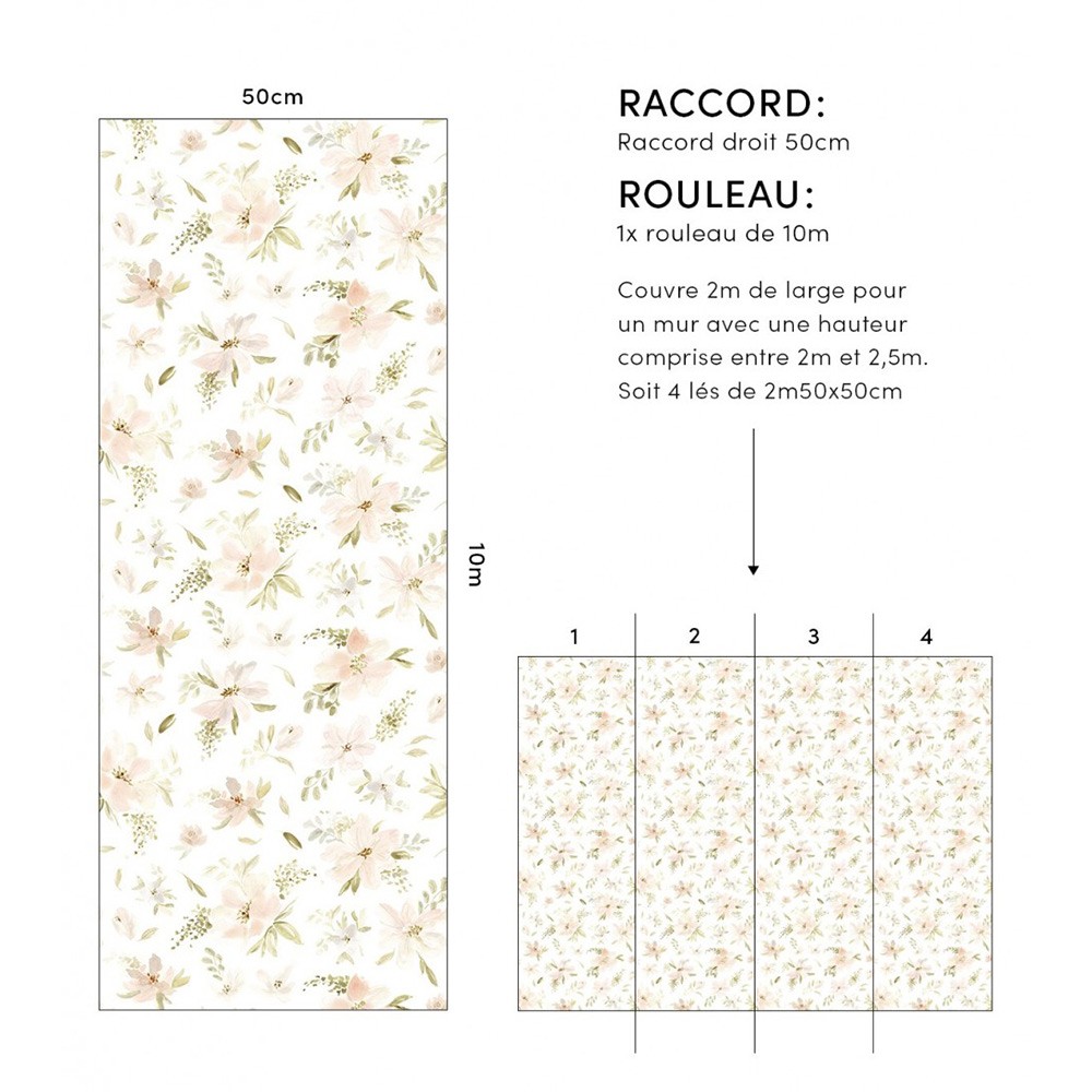 Ontdek dit prachtige Floral Appoline behang in vliespapier om de slaapkamer van uw kind te personaliseren. Vliespapier is een materiaal dat een revolutie teweeg heeft gebracht in de wereld van behangpapier, gemakkelijk op te hangen, geen behangtafel nodig, de lijm wordt rechtstreeks op de muur aangebracht en het vereist geen bijzondere voorbereiding en kan gemakkelijk worden gesneden met een cutter.