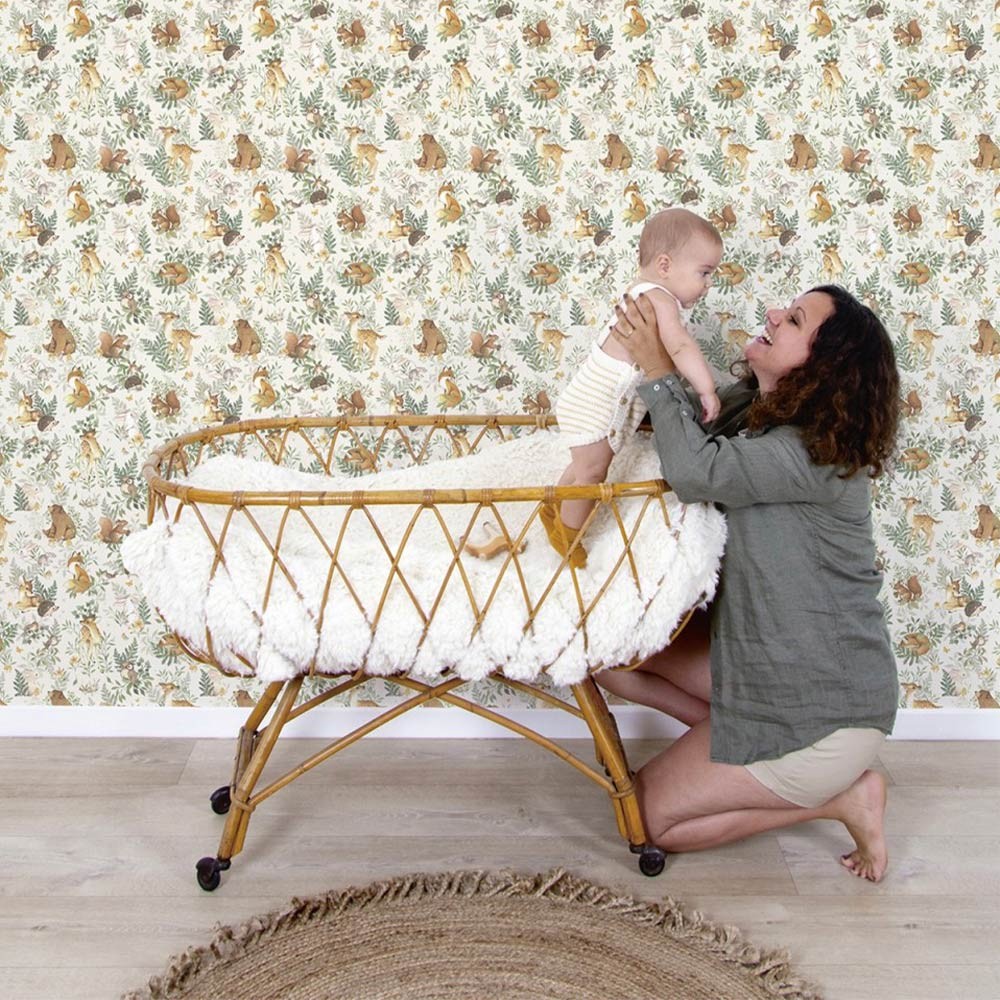 Ontdek dit prachtige bosdieren behang uit de Forest collectie in vliespapier om de slaapkamer van uw kind te personaliseren. Nonwoven is een materiaal dat een revolutie teweeg heeft gebracht in de wereld van behangpapier, gemakkelijk op te hangen, geen behangtafel nodig, de lijm wordt rechtstreeks op de muur aangebracht en het vereist geen bijzondere voorbereiding en kan gemakkelijk met een cutter worden gesneden.