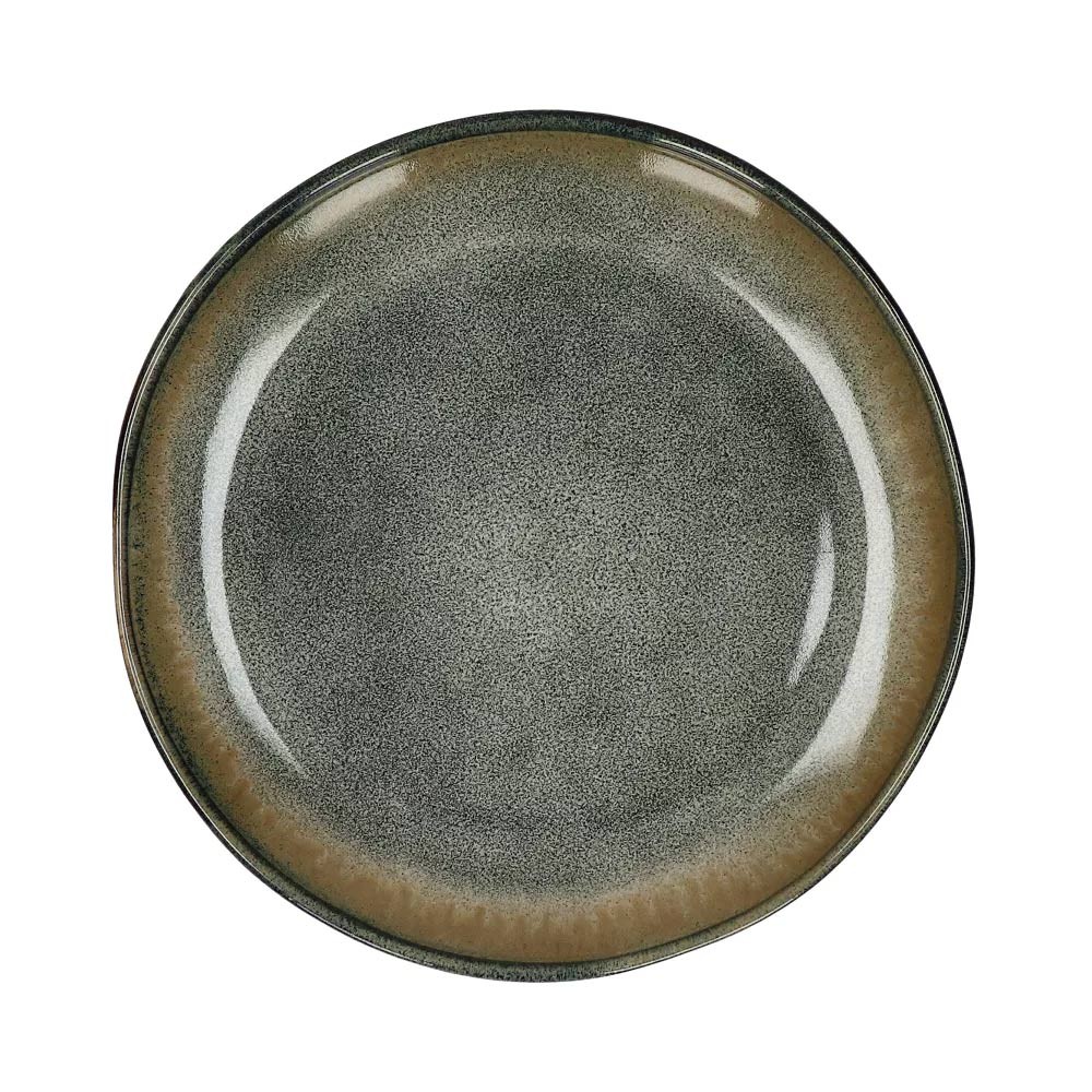 Elk stuk is eerst bedekt met een donkerbruine basiskleur, waarop een lichtere, grijsblauwe tint is aangebracht. Het geheel wordt vervolgens gecompleteerd door een donkerblauwe rand die reageert met de andere twee glazuren, waardoor de bovenste rand het kleurenpalet van een mooie herfstavond krijgt.