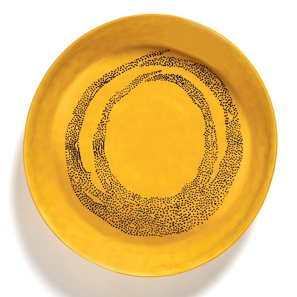 Als we gasten ontvangen, vinden we het altijd leuk om mooie gerechten, elegante sets en originele gerechten naar voren te halen. De Feast collectie, van Ottolenghi voor Serax, past perfect in deze situatie. Deze laatste presenteert een groot aantal producten met originele kleuren en designs, iets om een goede indruk te maken op uw gasten. Hier is deze gele en zwarte Feast hoge serveerschaal ideaal voor het presenteren van uw gerechten. U kunt uw vlees en bijgerechten daar tijdens de maaltijd plaatsen, of zelfs gebak en fruit als dessert. Het is altijd nodig om mooie, grote containers bij de hand te hebben, en het is nog beter als ze modern zijn zoals die in de Feast-collectie. Ze zijn ook verkrijgbaar in vele kleuren en maten om u een ruime keuze aan mogelijkheden te bieden, nu te vinden op onze site!