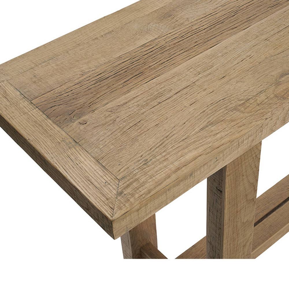 Geïnspireerd door de ruwe charme van landelijke werkbanken, laat je je verleiden door de allure van de MARCELLE console. Hij is gemaakt van licht teruggewonnen eikenhout en brengt authenticiteit en warmte in elke woonruimte. De natuurlijke houtnerf en stevige constructie maken het een tijdloos stuk dat gemakkelijk te combineren is met elk interieur.