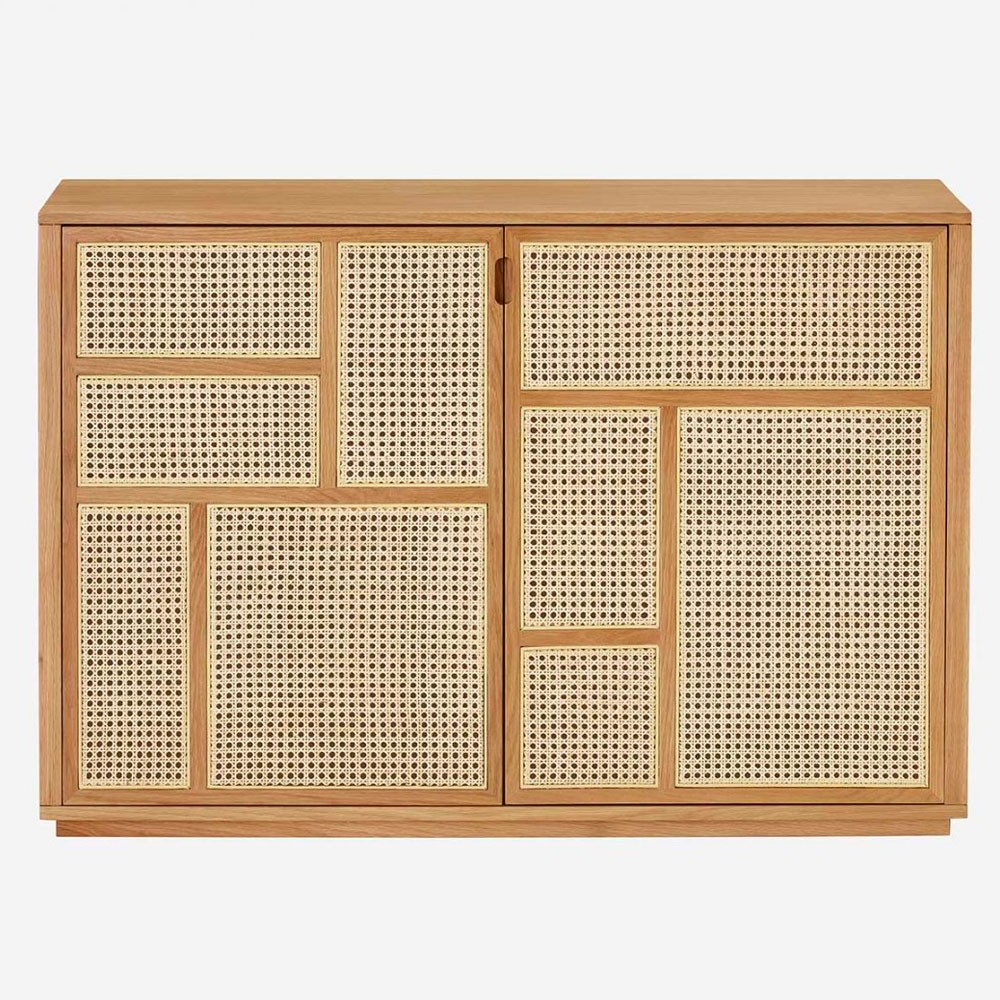 Air is een dressoir van Mathieu Gustafsson dat een grafisch patroon combineert met een eiken structuur ingelegd met natuurlijk riet, wat een gevoel van lichtheid en transparantie geeft. Het design Air dressoir van Design House Stockholm is te gebruiken als vrijstaande roomdivider of tegen een muur te plaatsen.