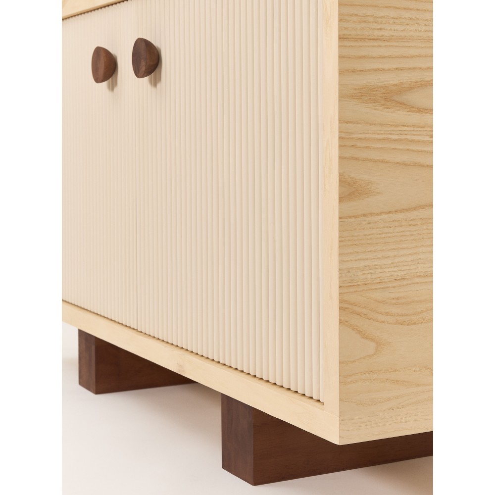 - Bois massif d’hévéa et placage de 3mm de bois de frêne
